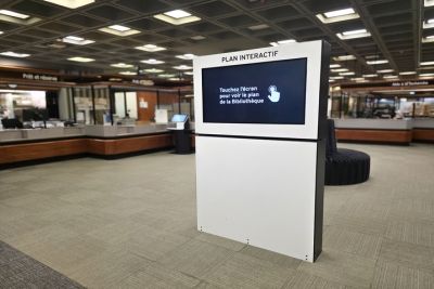 La Bibliothèque continue d’améliorer l’expérience de ses usagers et usagères! Depuis peu, une borne à écran tactile est installée à l’entrée du 1er étage de la Bibliothèque au pavillon J.-C.-Bonenfant. Cette nouvelle interface, simple et conviviale, permet de s’orienter plus facilement sur les différents étages.