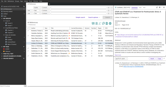 Ensuite, en effectuant un clic droit sur une référence, vous accédez à la fonction OpenURL Link, qui permet de la rechercher dans Sofia, l’outil de recherche de la Bibliothèque. Pour de l’information à ce sujet, consultez la section Ajouter et modifier des références, sur le site Web de la Bibliothèque.