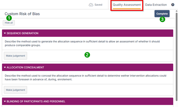 - Complete: Références pour lesquelles l’évaluation des risques de biais est complétée
